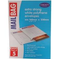 County Stationery Mail Bag Polythene Envelopes x5 White Small 160x230mm (Pack of 10) C260