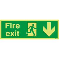 Safety Sign Niteglo Fire Exit Running Man Arrow Down 150x450mm PVC FX04211M