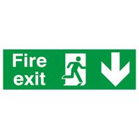 Safety Sign Fire Exit Running Man Arrow Down 150x450mm PVC FX04211R