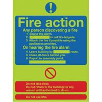 Safety Sign Niteglo Fire Action 300x250mm PVC FR03527M