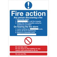 Safety Sign Fire Action Words A4 Self Adhesive FR03550S